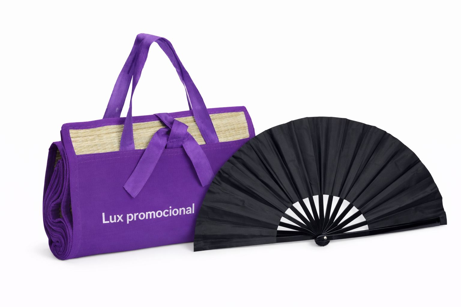 O kit é composto por um leque compacto, com estrutura plástica resistente e tecido leve, perfeito para refrescar com praticidade, e uma esteira dobrável em palha natural, que garante conforto em momentos de lazer.